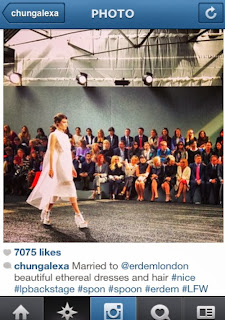Vogue magazine also happened to post a photo of Alexa Chung and Pixie Geldof at the catwalk for Erdem, this gave the view of a fan, while then going onto the linked girls Instagram's from their photos you can have the view that they have for the show itself.